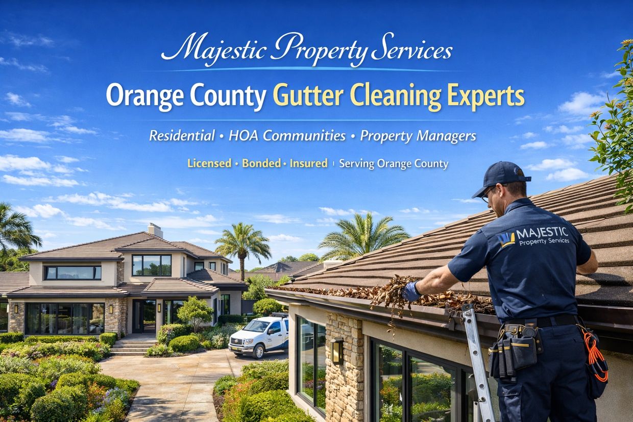 Majestic Property Services proudly serves homeowners, property managers, and HOA communities throughout Orange County with dependable gutter cleaning services.